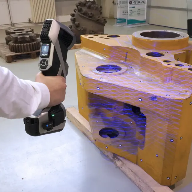 SCANTECH'in gelişmiş kablosuz teknolojisi ve adaptif fotogrametrisiyle desteklenen KSCAN-X, büyük ölçekli 3B ölçümler için yeni bir standart belirleyen akıllı, kablosuz, geniş alanlı bir 3B tarayıcıdır. Kablosuz çalışma, ultra geniş tarama alanı, genişletilmiş alan derinliği ve hızlı tarama özelliklerine sahip KSCAN-X, havacılık, ağır sanayi ve demiryolu taşımacılığı gibi endüstrilerde ultra büyük ve büyük ila orta ölçekli parçalar için pürüzsüz ve yüksek hassasiyetli 3B ölçümler sunar. Verimliliği artırmak ve doğru kalite kontrolü sunmak için tasarlanan KSCAN-X, gelişmiş üretim için nihai çözümdür.