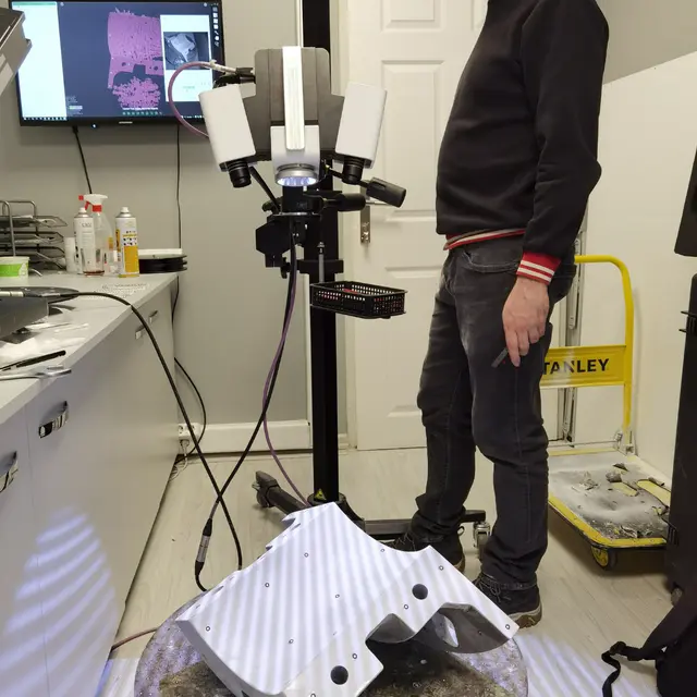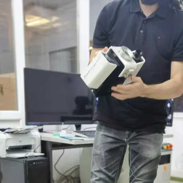 Vylo Raptor 3DX optik tarama ünitesi platformdan bağımsız da çalışabilir. Platforma sığmayan büyük parçalarınızın taranması için bir tripod üzerinde kalibrasyonunu yapın ve taramanıza başlayın